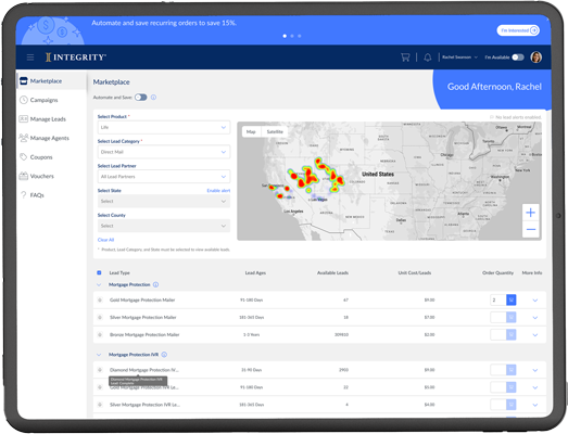 - Multiple options — Browse vendors and purchase leads on the IntegrityCONNECT lead marketplace